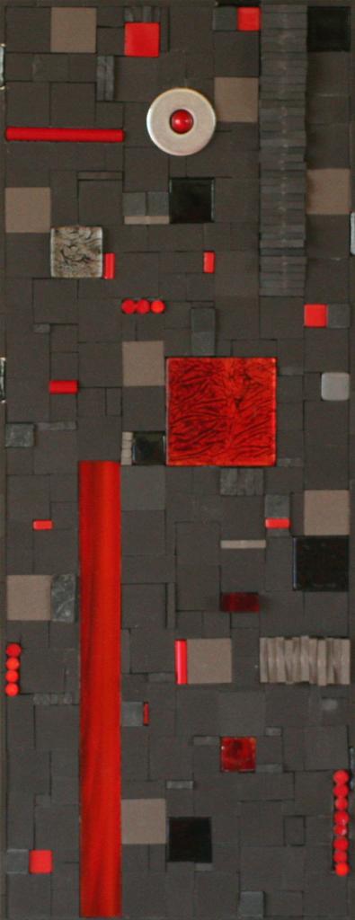 - (17 cm x 41cm) marbre, grès cérame, tige de verre, smalt, pate de verre Albertini, perles, etc...